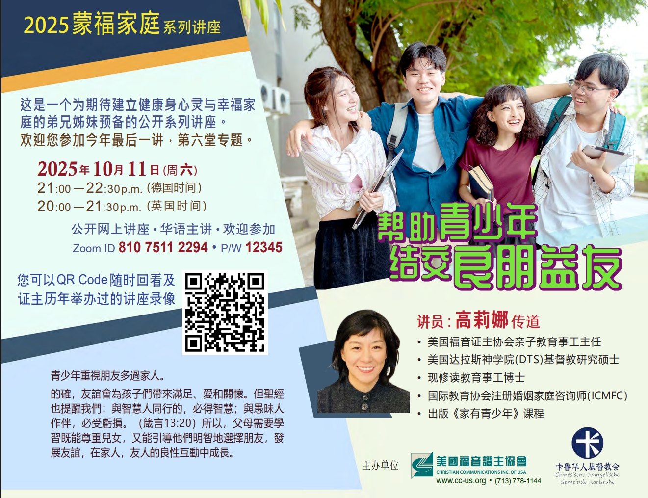 2025證主家庭事工系列講座 因愛得醫治:基督徒心理創傷療癒與靈命成長講員 : 黃芯芯博士 10月16日 週四 […]