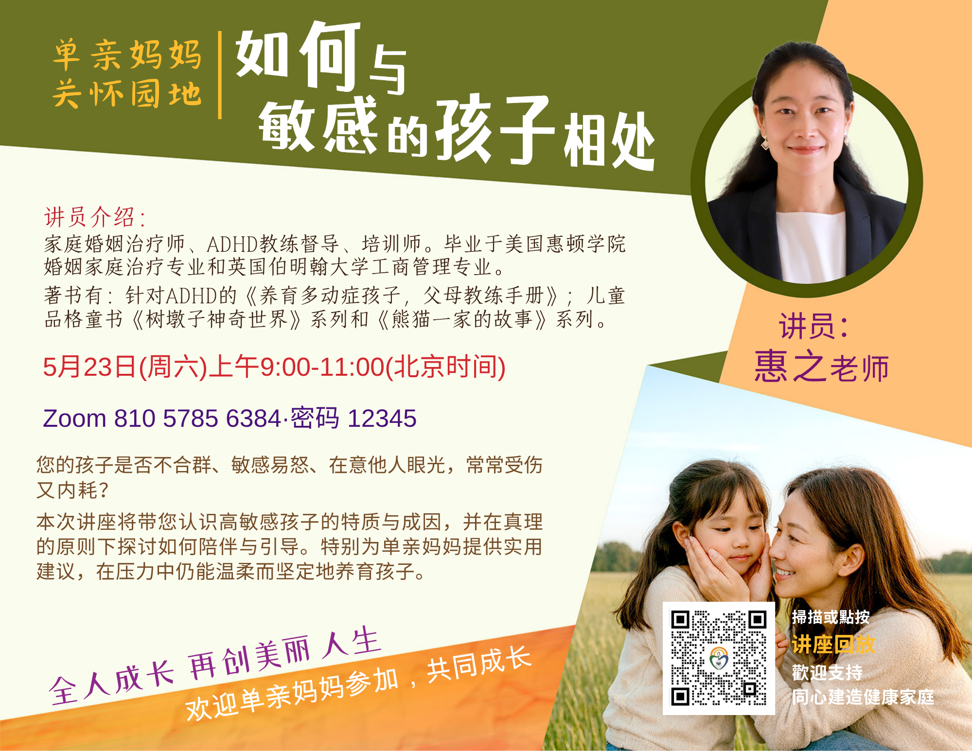 证主家庭事工 单亲妈妈4月主题讲座丨看见冲突中的自己 李卢亚洁老师 美滿家庭学堂 2026年3月31日 No Comments 单亲妈妈园地4月主题讲座 讲题:看见冲突中的自己讲员:李卢亚洁老师 在单亲生活中,我们承受许多压力,也常面对与 […]