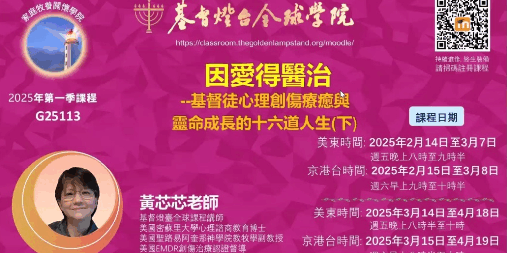 讲题:因愛得醫治:基督徒心理創傷療癒與靈命成長