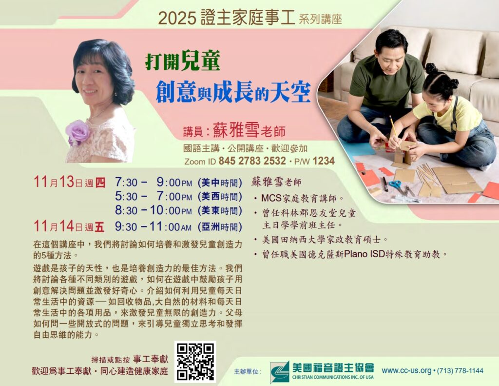 证主家庭11月份讲座,欢迎预留时间上线参加!