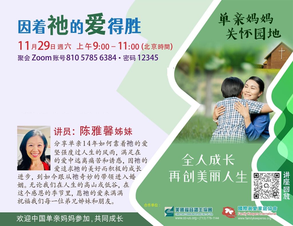 单亲妈妈关怀园地11月讲座 因着祂的爱得胜 陈雅馨老师 [音频回放]